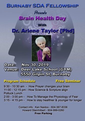 30 November - Brain Health Day with Arlene Taylor - Deer Lake School Gym 5550 Gilpin St Burnaby.